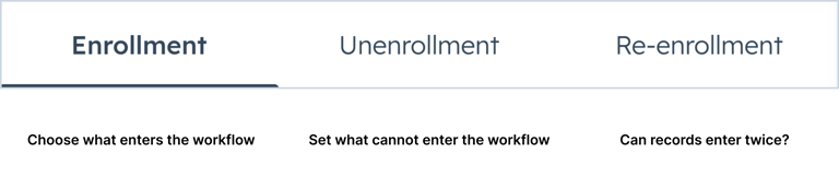Once you choose this trigger, you'll see three tabs - Enrollment, Unenrollment and Re-enrollment.